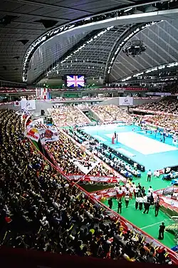 Tokyo Metropolitan Gymnasium (東京体育館, Tōkyō Taiikukan) is a sporting complex in Sendagaya, Shibuya, Tokyo, Japan. Built in 1954 for the World Wrestling Championship, it was also used as the venue for gymnastics at the 1964 Summer Olympics, and hosted the table tennis competition at the 2020 Summer Olympics.[1] The gymnasium was rebuilt to a futuristic design created by Pritzker Prize winner Fumihiko Maki from 1986 to 1990.