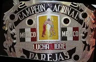 The Mexican National Tag Team Championship (Campeonato Nacional de Parejas) is a national Mexican professional wrestling championship controlled by the Comisión de Box y Lucha Libre Mexico D.F. (Mexico City Boxing and Wrestling Commission) and competed for by two-man tag teams. The championship was created in 1957, promoted regularly until 2003, and intermittently until 2011 when the last known defense took place. Empresa Mexicana de Lucha Libre (EMLL) had control of the championship from its creation until 1992,[b] at which point it was transferred to AAA.[c] The championship history up until 1982 is only partially known, with periods of times where it is unclear who held the championship, but it is generally accepted that the lineage began in 1957 when Los Hermanos Shadow (The Shadow Brothers; Blue Demon and Black Shadow) won an eight-team tournament to be crowned champions.[1] The championship was reintroduced in 2020 after previously being abandoned in 2011.