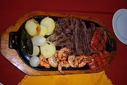 Mexican street food can include tacos, quesadillas, pambazos, tamales, huaraches, alambres, al pastor, and food not suitable to cook at home, including barbacoa, carnitas, and since many homes in Mexico do not make use of ovens, roasted chicken.[40] One attraction of street food in Mexico is the satisfaction of hunger or craving without all the social and emotional connotation of eating at home, although longtime customers can have something of a friendship/familial relationship with a chosen vendor.[41]
