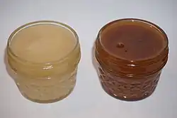 Despite the introduction of wheat and rice to Mexico, maize is the most commonly consumed grain in almost all areas of the country and serves as the main ingredient in many local recipes (such as maize tortillas, atole, pozole, menudo, and tamal). While also eaten fresh, most maize is dried, nixtamalized and ground into a dough called masa.[13][14] This dough is used both fresh and fermented to make a wide variety of dishes, from drinks (such as atole and pozole) to tamales, sopes, and many other foods. However, the most common way to eat maize in Mexico is in the form of tortillas, which accompany almost every dish. Tortillas are made of maize in most of the country, but other regional versions exist, such as wheat in the north or plantain, yuca and wild greens in Oaxaca.[4][13]