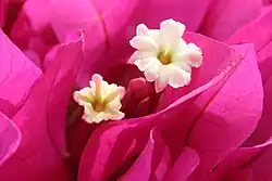 Mexican pink (Spanish: rosa mexicano) is a purplish pink tone of the color rose, vivid and saturated, similar to the colors called fuchsia or magenta. It has been compared with the color of the bracts of ornamental climbing plant called bougainvillea, that is, Trinity and Santa Rita bougainvillea. Its origin is that this color is used in traditional clothing such as serapes and is used in the craft art and fine art of traditional Mexican culture.