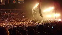 At that rock festival, nudity, free love, experimental drug use, profanity, the peace sign inserted in the Mexican flag and the presence of the American flag so scandalized the conservative Mexican society that the government imposed cultural curbs to La Onda, and especially to rock music. The media called the move El Avandarazo.[7] The festival, intended to emulate Woodstock and Altamont, expected to attract a maximum of 25,000 concertgoers[8] but about 300,000 showed up.[9] The government helped some stranded attendees at the end of the festival by sending 300 buses.[10]