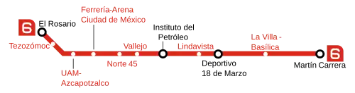 | Type of line | El Rosario is a superficial terminal. From Tezozomoc to Martín Carrera, underground. |