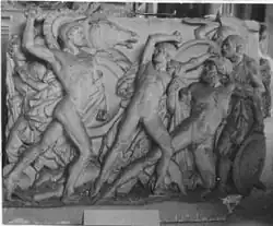 In Roman mythology, Mezentius was an Etruscan king, and father of Lausus. Sent into exile because of his cruelty, he moved to Latium. He reveled in bloodshed and was overwhelmingly savage on the battlefield, but more significantly to a Roman audience he was a contemptor divum, a "despiser of the gods."