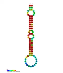 ![]() Conserved secondary structure of miR-33a microRNA precursor | |