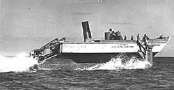 Miami Shipbuilding became the second largest World War II employer in Miami from 1941 to 1945. After the war only the boatyard on the south side of the river was used. Miami Shipbuilding designed the boat known as the Miamis. The Miamis was designed by Dair Long. Miami Shipbuilding main building is known as its Art Moderne office style at 615 SW 2nd Ave was used as the police station on Miami Vice. The Art Moderne office had a large relief panel above the entrance with a man holding up a ship, kneeling in water and surrounded by a ship's helm, propeller, and gear. The site has been a boatyard since 1915.[4] The building was later demolished in 2007, as it was not put on a protected building list.[3] Miami Shipbuilding built 329 Air-Sea Rescue Boat and through its subcontracts 411 more were built, like HMAS Air Faith (909). In all 740 Air-Sea Rescue Boats were built for the war and place around the world to save down airman. Air-Sea Rescue Boat were design to be fast and rough. After the war Miami Shipbuilding built recreational boats and hydrofoils boats. The Hydrofoil Project of the Office of Naval Research had Miami Shipbuilding built a Hydrofoil boat from 1954 to 1957. The prototype hydrofoil boat completed was the Halobates, in 1957 with an U.S. Navy LCVP(H) as the hull. Halobates had water wings and could do more than 40 miles per hour. Steered was by an electronic automatic pilot. Miami Shipbuilding tested the LVHX-2 which used an US Army DUKW for is hull.[5] Robert Johnston was the main designer for Halobates and LVHX-2. Halobates development led to the design of a new boat the Denison a 104-foot, 95-ton hydrofoil, named after its sponsor, Col. Charles R. Denison. HS Denison was built by Grumman in Oyster Bay, Long Island completed June 5, 1962. LVHX-1 was built for the US Marine Corps built by Lycoming Division of AVCO, but tested by Miami Shipbuilding. LVHX-2 built by Food Machinery Corp for US Army with a DUKW for hull, was but tested by Miami Shipbuilding.[6][7] Miami Shipbuilding closed in the January 1993. The boatyard site today is Latitude on the River Condo and Latitude One International Business Center.[2]