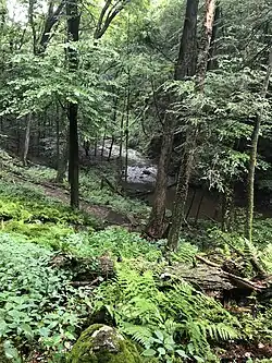 The Mianus Fault runs near the river, pushing rock on the east side down, relative to the west side.[1]