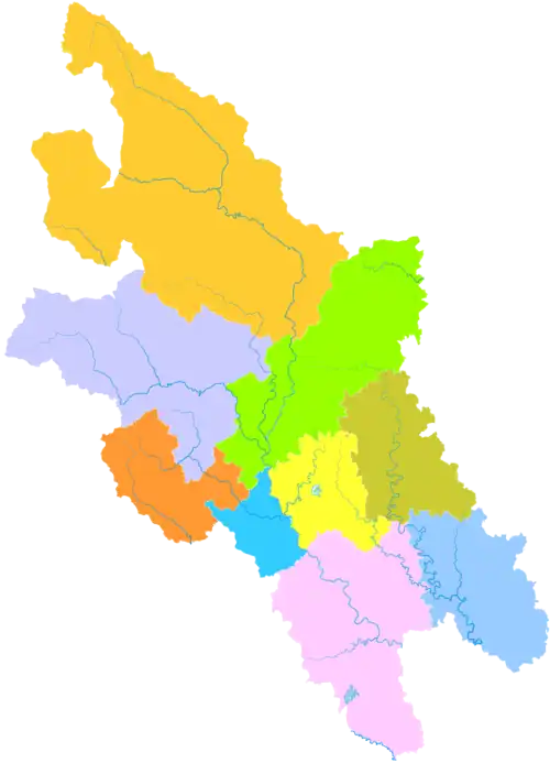 Mianyang (simplified Chinese: 绵阳; traditional Chinese: 綿陽; pinyin: Miányáng; Wade–Giles: Mien2-yang2; Sichuanese romanization: Mien2-iang2; formerly known as Mienchow, Chinese: 綿州; pinyin: Mianzhou; Sichuanese romanization: Miencheo; lit. 'Mian Prefecture') is the second largest prefecture-level city of Sichuan province in Southwestern China. It borders Nanchong City to the east, Suining City to the south, Deyang City to the southwest, Aba Tibetan and Qiang Autonomous Prefecture to the west, Gansu Province to the north, and Guangyuan City to the northeast.[3] Located in north-central Sichuan covering an area of 20,281 square kilometres (7,831 sq mi) consisting of Jiangyou, a county-level city, five counties, and three urban districts.[4] Its total population was 4,868,243 people at the 2020 Chinese census, of whom 2,232,865 live in its built-up (or metro) area made of three urban districts.