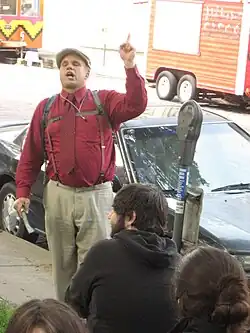 Micah Armstrong, also known as Brother Micah, is an American Trinitarian Pentecostal[2] evangelist who preaches publicly at universities.[1] He began his campus ministries full-time in 2006, however he visited campuses in his spare time as early as 2004,[3] with visits also possibly occurring as early as the mid-1990s.[4] Armstrong travels with his wife Elizabeth preaching in circuits mostly in the eastern and southern parts of the United States.[1][5][6] Armstrong uses outrageous statements to spark heated discussions. According to Jay Reeves of the Associated Press, Armstrong "holds a near mythic status on college campuses across the eastern United States".[1] On December 1, 2013, Jesse Morrell's OpenAirOutreach.com, published a documentary film on Armstrong's personal life and preaching.[7]