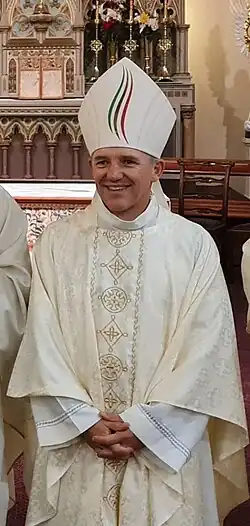 On 6 January 2020, Gielen was appointed auxiliary bishop of Auckland by Pope Francis as the titular bishop of Abbir Maius.[3] He was ordained bishop at the Vodafone Event Centre, Manukau, Auckland[4] on Saturday 7 March 2020[5] in the presence of 3,000 people.[1] The principal consecrator was Bishop Patrick James Dunn and the principal co-consecrators were Bishop Stephen Lowe and Bishop Peter Cullinane[6] The deacon at the ordination Mass was Deacon Henk Gielen of Papamoa, Michael Gielen's father.[2] Other bishops participating included Cardinal John Dew, Bishop Michael Dooley, Bishop Colin Campbell, Bishop Basil Meeking, Bishop Owen Dolan, Bishop Denis Browne and Bishop Richard Umbers. The papal bull of appointment was read, on behalf of the Apostolic Nuncio, Archbishop Novatus Rugambwa, by Monsignor Edward Karaan, Deputy Head of Mission and First Secretary at the Apostolic Nunciature in Wellington.[1]