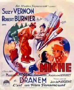Miche is a 1932 French drama film directed by Jean de Marguenat[1] and starring Suzy Vernon, Robert Burnier and Marguerite Moreno.[2] It was produced and distributed by the French subsidiary of Paramount Pictures. It was shot at the company's Joinville Studios in Paris.