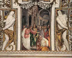 Born in Sansepolcro, Tuscany, Alberti trained in Florence, where he was a pupil of Daniele da Volterra. His most famous paintings are Murder of the Innocents at the church of Trinità dei Monti. He painted the vaults of the Conservators' Apartment, representing the Murder of the Innocents',' much spoiled by restoration. Michele Alberti has been erroneously recorded as a member of the family of Durante Alberti of Borgo San Sepolcro.[1]
