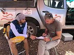 Graglia (left) sitting with his doctor during a rest spot crossing the Atacama Desert