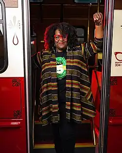 In 2020, Browder designed a mural for Black Lives Matter that was painted near the site of Montgomery's former slave market and was featured on The TODAY show.[23] Browder's work has been featured in The New York Times as a notable representation of Montgomery's complicated past[24] and as a representation of the evolution of civil rights[17] as well as commemorating the centennial ratification of women's right to vote.[25] She was the designer and artist of #TheMarchContinues Mural at the Southern Poverty Law Center.[26][27]