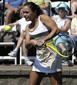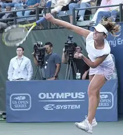 On 16 July 2008, she nearly won the best victory of her career, narrowly losing to former world No. 1 player, Serena Williams, in three sets.[6] The day before, she had beaten world No. 34, Gisela Dulko, in straight sets.[7]