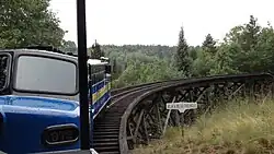 The Michigan AuSable Valley Railroad was a 16 in (406 mm), 1/4-scale ridable miniature railway, located in Fairview, Michigan. The railroad ran through the scenic Huron National Forest and the Comins Creek valley.[1][2][3][4][5][6][7][8][9][10][11][12][13] The railroad operated continuously from 1994 before closing permanently in 2021[14] due to COVID-19 and deteriorating infrastructure, trestles and roadbed.[15]