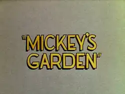 Mickey's Garden is a 1935 American animated short film produced by Walt Disney Productions and released by United Artists. The film was the second Mickey Mouse cartoon shot in Technicolor (after The Band Concert) and is also the first color appearance of Pluto. The cartoon is also the first color cartoon where Mickey speaks (though he only does so at the end when Pluto starts licking him). The film's plot centers on Mickey Mouse trying to rid his garden of insects, but they keep coming back. When he accidentally gets hit with his own bug spray, he begins seeing a warped reality.[4] It was the 76th Mickey Mouse short film to be released, and the fifth of that year.[5] The last dialogue of the show is Mickey telling Pluto to stop licking him in the last 20 seconds.