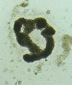 As the etymological derivation implies, Microcystis is characterized by small cells (of only a few micrometers diameter), which lack individual sheaths.[5]