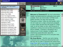 Microsoft Cinemania was an interactive movie guide as part of the Microsoft Home series of reference and educational multimedia application CD-ROM titles produced by Microsoft and published annually from 1992 up until 1997.