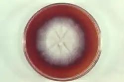 | Microsporum gallinae colony growing in petri dish | |