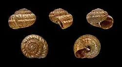 - ^ Chueca, Luis J.; Gómez-Moliner, Benjamín J.; Madeira, María José; Pfenninger, Markus (January 2018). "Molecular phylogeny of Candidula (Geomitridae) land snails inferred from mitochondrial and nuclear markers reveals the polyphyly of the genus". Molecular Phylogenetics and Evolution. 118: 357–368. doi:10.1016/j.ympev.2017.10.022. PMID 29107619.