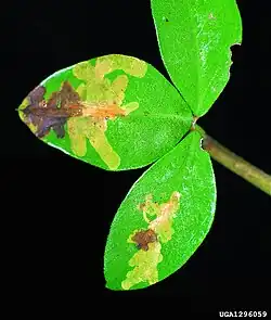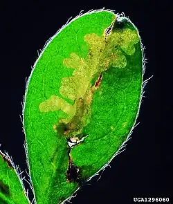 The larvae feed on Chamaecytisus hirsutus, Cytisus scoparius, Cytisus sessilifolius, Genista germanica, Genista sericea, Genista tinctoria, Laburnum anagyroides, Lembotropis nigricans, Lupinus and Petteria ramentacea. They mine the leaves of their host plant.[2]
