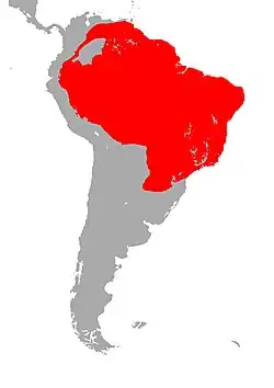 M. lemniscatus is found in Argentina, northern Bolivia, Brazil, Colombia, eastern Ecuador, French Guiana, Guyana,[5] Paraguay, eastern Peru, Suriname, Trinidad, and Venezuela.[2]