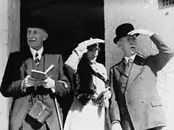 Timothy O'Shea died age 91 at Middenbury in 1922. Ella, Pat and Ted (d.1930) never married and lived out their days at Middenbury in comfortable circumstances. Prior to World War II, Middenbury became a well-known social venue for the elite in Brisbane, with the house and the grounds hosting numerous events and guests. The social pages of Brisbane's newspapers regularly reported on occasions held at the residence including events connected to racing and regatta parties. In 1936 Ella was featured as part of The Courier-Mail's "Brisbane Hostesses in the Home" series. Pictured in the drawing room of Middenbury, the article claimed, "Musicians, actors, travellers...who have been guests...have spread the fame of Miss Ella O'Shea as a hostess in all the English speaking countries".[57][58][59][60][62][63] Ella O'Shea died on 2 February 1949, age 92. Three days later, on 5 February, Pat, who was reported as saying to his close friends, "If I live only five minutes after my sister, I shall die happy" also died,[64] both leaving substantial estates. Pat's obituary in the Sunday Mail noted the end of an era at the now empty Middenbury, where, "Titled people, actors, artists, world celebrities were invited...They found its halls a home and its gardens a soft sanctuary".[1][57][64]