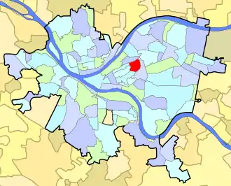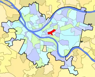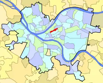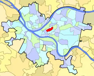 ![]() Location of the Hill District neighborhoods within the City of Pittsburgh | |