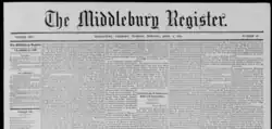 - ^ a b c d e f "The Middlebury register. [volume]". Chronicling America « Library of Congress. August 4, 2008. ISSN 2328-1170. Retrieved August 15, 2020.