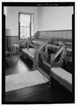 During the 1790s, the building was doubled in size through the addition of a separate apartment. In the 1880s, the meetinghouse was reconfigured creating a more church-like appearance and orientation.[5]