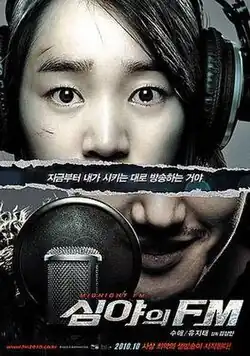 Midnight FM (Korean: 심야의 FM; RR: Simyaui FM) is a 2010 South Korean action thriller film by Kim Sang-man starring Soo Ae and Yoo Ji-tae.[3]
