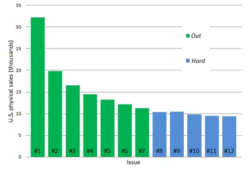 The trade Midnighter: Out had 1,678 copies accounted during its release month, February 2016, in Diamond distributed comic shops. It was placed at number forty-four on Diamond's trade paperbacks chart.[85] Released in October of the same year, Midnighter: Hard had 1,232 copies distributed during its release month, placing at number ninety on the same chart.[86] According to DC co-publisher, Dan DiDio, "[DC] has seen more life for Midnighter in the graphic novel area". He further explained: "With the Midnighter book in particular, [which had] a lot of great press, a lot of great reviews, that's where we've seen reviews really inform the sales on the graphic novel collection".[87] Steve Orlando described Midnighter trade sales as "very, very nice with a huge amount of support from fans and readers".[88]