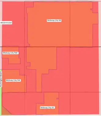 ![]() Midway City, California Location within Greater Los Angeles ![]() Midway City, California Location in California ![]() Midway City, California Location in the United States | |