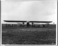 Prior to 1927, Zenith Corporation manufactured farm implements in Midway City.[18] After learning of American aviator Charles Lindbergh's famed May 20–21, 1927 first solo transatlantic flight via non-stop fixed-wing aircraft flight between America and mainland Europe,[18] Zenith Corporation owners Charles Rocheville and Albin Peterson formed the Zenith Aircraft Corporation.[19] Three months later, by August 1927, Zenith Aircraft Corporation built a huge, lightweight tri-motor aircraft named Schofield Albatross in a hangar/factory at Midway City Airport.[19] To make its maiden flight some time in the fall of 1927, the Albatross, identified as Zenith Albatross Z-12,[18] had an externally braced wing spanning 90-ft and a fuselage designed to carry 14 passengers and baggage at a maximum speed of 100-mph.[19] With no market for the then-largest aircraft in the world,[20] the Zenith Albatross Z-12 eventually was sold to Hollywood and used to represent a crashed Fokker in the 1928 film Conquest directed by filmmaker Roy Del Ruth.[19] Zenith manufactured a second airplane, the Zenith Albatross Z-6, before the 1930s Great Depression affected the corporation and Zenith went back to manufacturing farm equipment in 1932.[18][21]