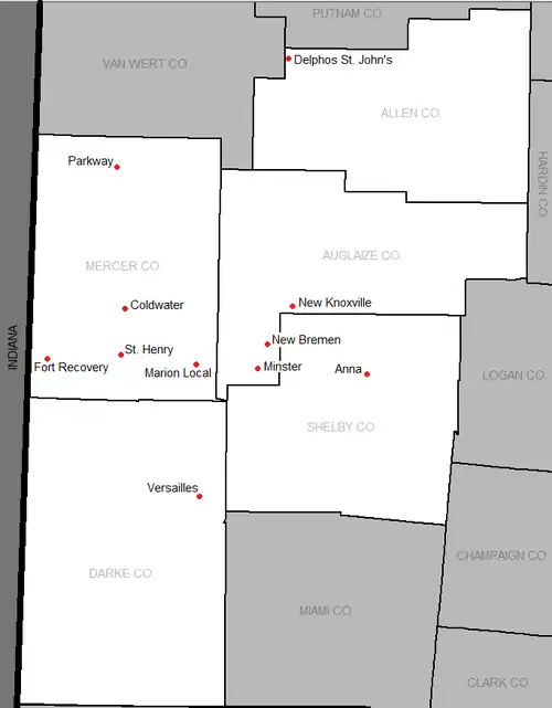| New Bremen | 22, 20 | 23, 22, 19, 17 | |||||||||||||