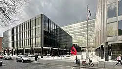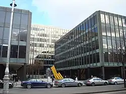 Miesian Plaza (formerly known as the Bank of Ireland Headquarters) is an office building complex on Lower Baggot Street, Dublin. It is designed in the International Style by Scott Tallon Walker and inspired by the architect Ludwig Mies van der Rohe, particularly his Seagram Building.[1] One of Scott Tallon Walker's founders, Robin Walker, had studied under and taught with Mies, though the building was chiefly designed by partner Ronnie Tallon.[2] Dublin City Council described it as "one of the most important Modernist buildings in Ireland"[3] and "Dublin’s finest example of the restrained and elegant Miesian style",[4] and its facade and plaza are protected structures.[3]