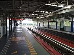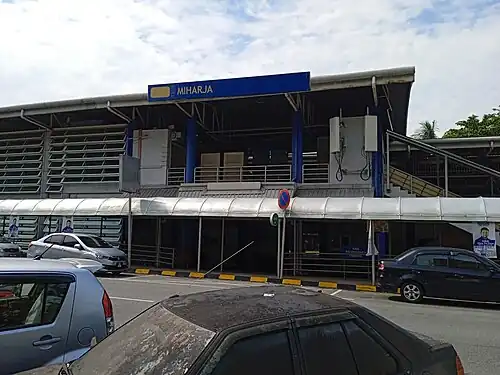 Miharja LRT station is a Malaysian low-rise rapid transit station situated near and named after Taman Miharja (Malay; English: Miharja Estate). The station is part of the Ampang Line (formerly known as STAR-LINE)