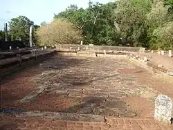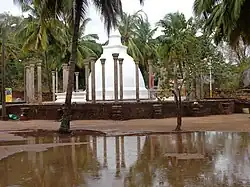 Ambasthala Dagaba, a small stupa surrounded with stone pillars.