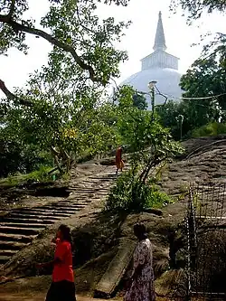 To the side of the Ambasthala Dagoba is a flight of rock-carved steps leading to a large white Buddha statue.[4]