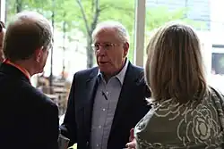 On October 19, it was announced that Gravel was excluded from the next Democratic debate – October 30, 2007, in Philadelphia to be televised on NBC News and MSNBC and held at Drexel University[49] – with the debate sponsors or the Democratic National Committee saying Gravel's campaign had not met fund-raising, polling, or local campaign organizational thresholds.[76][77][78] For the Philadelphia exclusion, Gravel blamed corporate censorship on the part of sponsor owner and alleged military-industrial complex member General Electric for his exclusion.[79][80]