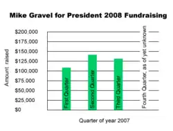 - ^ "Report for Mike Gravel for President 2008". Archived from the original on November 12, 2007. Retrieved December 29, 2007. FEC Quarterly filing for October quarter 2007