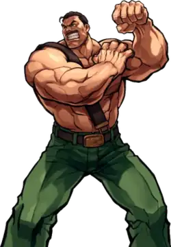 Beyond the Final Fight series, Haggar appears as a playable character in a prequel series, Saturday Night Slam Masters and its two sequels, Muscle Bomber Duo and Ring of Destruction: Slam Masters 2.[5] He was also intended to appear in the canceled 3D fighting game Capcom Fighting All-Stars as a selectable character, reprising his role as mayor to save Metro City from a bomb attack.[6] He also appears as one of several playable characters in the crossover game Namco × Capcom, and as a character card in each of the SNK vs. Capcom: Card Fighters titles. Haggar appears as the only playable Final Fight character in the crossover fighting games Marvel vs. Capcom 3: Fate of Two Worlds, Ultimate Marvel vs. Capcom 3, and Marvel vs. Capcom: Infinite.