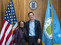Johnston successfully ran for mayor of Denver in 2023, succeeding Michael Hancock, who was term-limited.[1] A nonpartisan blanket primary was held on April 4, where he finished in first place and former Denver Metro Chamber of Commerce CEO Kelly Brough finished in second place. Since no candidate received a majority of the vote, they faced each other in a June 6 runoff election, where Johnston won by a comfortable margin. Brough conceded the race later that night.[35] His campaign was endorsed by The Denver Post and many progressive figures in the runoff, while Brough's support came from more conservative groups.[36][37][38]