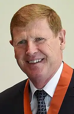 He was chosen for the coxed four for the 1980 Moscow Olympics, but New Zealand did not attend the games due to the boycott.[2] At the 1981 World Rowing Championships at Oberschleißheim outside Munich in Germany, he was a member of the New Zealand eight, which won the B final.[4] At the 1982 World Rowing Championships at Rotsee, Switzerland, he won a gold medal with the New Zealand eight in the stroke seat.[5] At the 1983 World Rowing Championships at Wedau in Duisburg, Germany, he won a gold medal with the New Zealand eight in the stroke seat.[6] At the 1984 Los Angeles Olympics, he was a member of the New Zealand eight that came fourth.[2][7] He retired after the 1984 Olympic Games from competitive rowing.[2]
