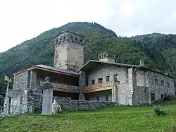 He was buried in his home village of Mestia, where a museum dedicated to him now stands.[7] Khergiani's fame was such that after his death, songs were composed that described Dali, the Svan cliff-dwelling goddess of the hunt, in mourning for him.[8] In 1971, the Khergiani Rock Climbing Prize was established in the Soviet Union in his honor, and several peaks and climbing routes have been named for him.
