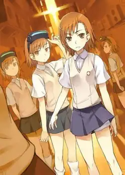 ![]() Mikoto Misaka as seen alongside her clones in an illustration from A Certain Magical Index. Art by Kiyotaka Haimura. | |