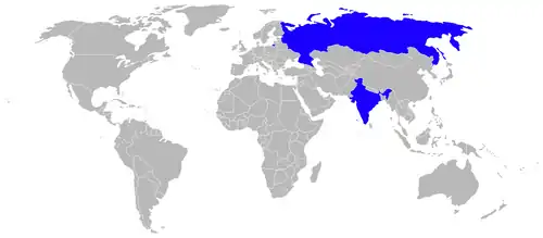 In January 2004, Indian Navy ordered 12 MiG-29K single-seat and 4 MiG-29KUB two-seat fighters.[38] The MiG-29K is to provide both airborne fleet air defence and surface attack capabilities. Deliveries began in December 2009.[39] Prior to their delivery to India, the MiG-29Ks underwent testing on board Admiral Kuznetsov.[40] In January 2010, India and Russia signed a deal worth US$1.2 billion for the Indian Navy to receive an additional 29 MiG-29Ks.[41] The MiG-29K entered operational service with India in February 2010.[39] Six aircraft were delivered by the end of 2010 Further deliveries of five MiG-29Ks and a flight simulator took place in May 2011. Further deliveries are to continue through 2012.[42][43] The fighters were based at INS Hansa in Goa on India's west coast until Admiral Gorshkov joined the navy under the name of INS Vikramaditya in last quarter of 2013. Vikramaditya was expected to carry up to 24 MiG-29K/KUB fighters. The future indigenous aircraft carrier INS Vikrant, being built by India, is also likely to carry these aircraft.[42]