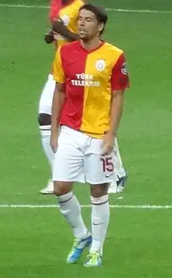 In August 2008, Baroš joined Turkish champions Galatasaray from Lyon for a fee of €4.7 million.[59][60] He made his first appearance against Kayserispor, playing the last 15 minutes. Baroš scored his first two goals for the club in the UEFA Cup first round, first leg game against Bellinzona.[61] Three days later, in his first league start, he once again scored two goals against Kocaelispor, with Galatasaray going on to win the match 4–1.[62] On 21 December 2008, Baroš scored a hat-trick in the 4–2 Süper Lig derby win against Beşiktaş, converting two penalties and scoring one from open play.[63] He scored another hat-trick later in the season against Hacettepe.[64] He finished the 2008–09 season as the Süper Lig top scorer with 20 goals.[65]