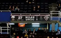 Nearly four years after his last junior game, Lucic was honoured by the Giants before a game against the Chilliwack Bruins on February 25, 2011. Dubbed "Milan Lucic Night," he was added to the club's Ring of Honour, showcasing the top Giants alumni of all time. The first 500 game attendees were also given free Lucic bobblehead dolls.[15] As part of the team's tenth anniversary, he was also voted by fans as the team's best player of all time.[16]